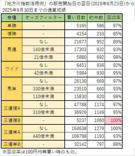 毎月、配信開始からの指数順位別、指数別の単勝回収率・複勝回収率の通算成績の最新版を公開!(※10/3更新)