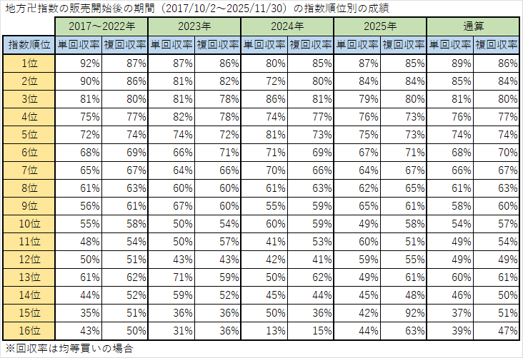 毎月、配信開始からの指数順位別、指数別の単勝回収率・複勝回収率の通算成績の最新版を公開!(※12/5更新)
