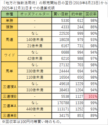 「地方卍指数活用術」の通算成績